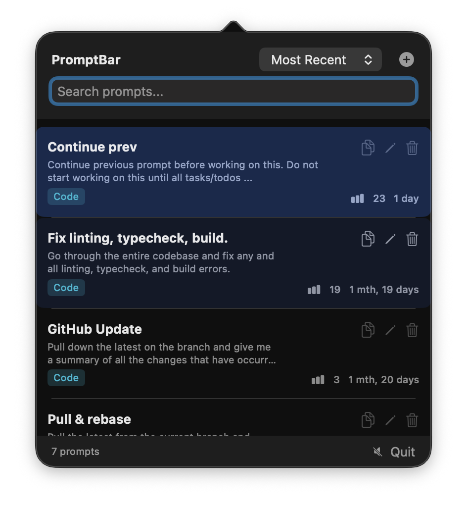 Store, organize, and access your prompts instantly with ⌘⌥⇧P